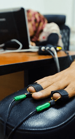Le détecteur de mensonge mesure plusieurs caractéristiques physiologiques comme le rythme cardiaque, la fréquence respiratoire, la température corporelle, la transpiration, voire même la dilatation de la pupille pour les plus sophistiqués imaginables. Tout ça, ce sont des réponses physiologiques. Et chaque petit élément physiologique s’exprime différemment en fonction d’une émotion. Un détecteur de mensonge ne mesure donc pas qu’une seule chose mais plusieurs caractéristiques physiologiques. C’est pour ça qu’on l’appelle aussi polygraphe.