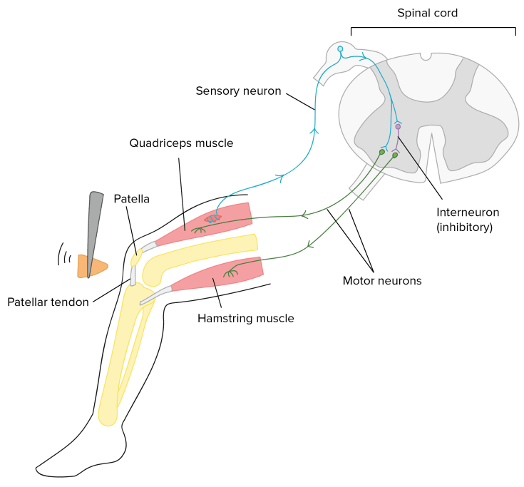 L’information neuronale du réflexe ne passe donc pas par le cerveau ! Littéralement, le corps réagit sans qu’on en ait conscience, ni aucune pensée. Dans notre exemple, on retire la main avant même qu’on ait conscience du pourquoi. Ce n’est qu’ensuite qu’on se rend compte que : « Ah oui, c’était brûlant ! » Et des réflexes de ce genre il y en a plein, comme les fameux réflexes ostéo-tendineux chez le médecin.