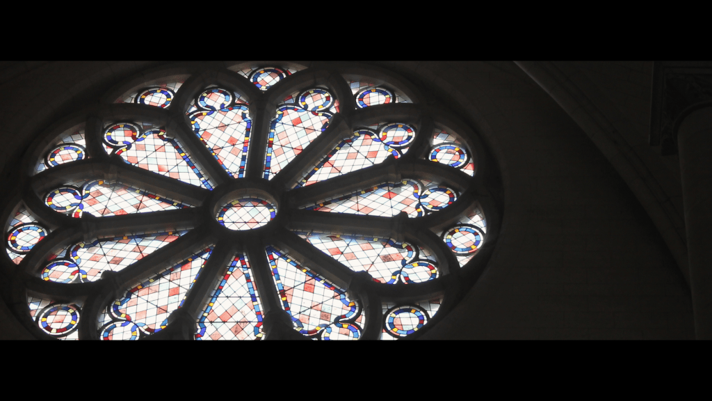 Un autre vitrail plus en hauteur, réalisé par la Maison Gaudin dans les années 1930, représente un certain Saint-Sidonius. Ce Sidonius, serait-ce notre moine Sidoine et pas un autre ? Très certainement. Enfin, côté clocher, on retrouve deux petits vitraux plein de symboles. L’un renvoyant les origines irlandaises de Saint-Saen. On y voit clairement le fameux trèfle irlandais. Et l’autre renvoyant vers les chemins parcourus en tant que pèlerin chrétien.