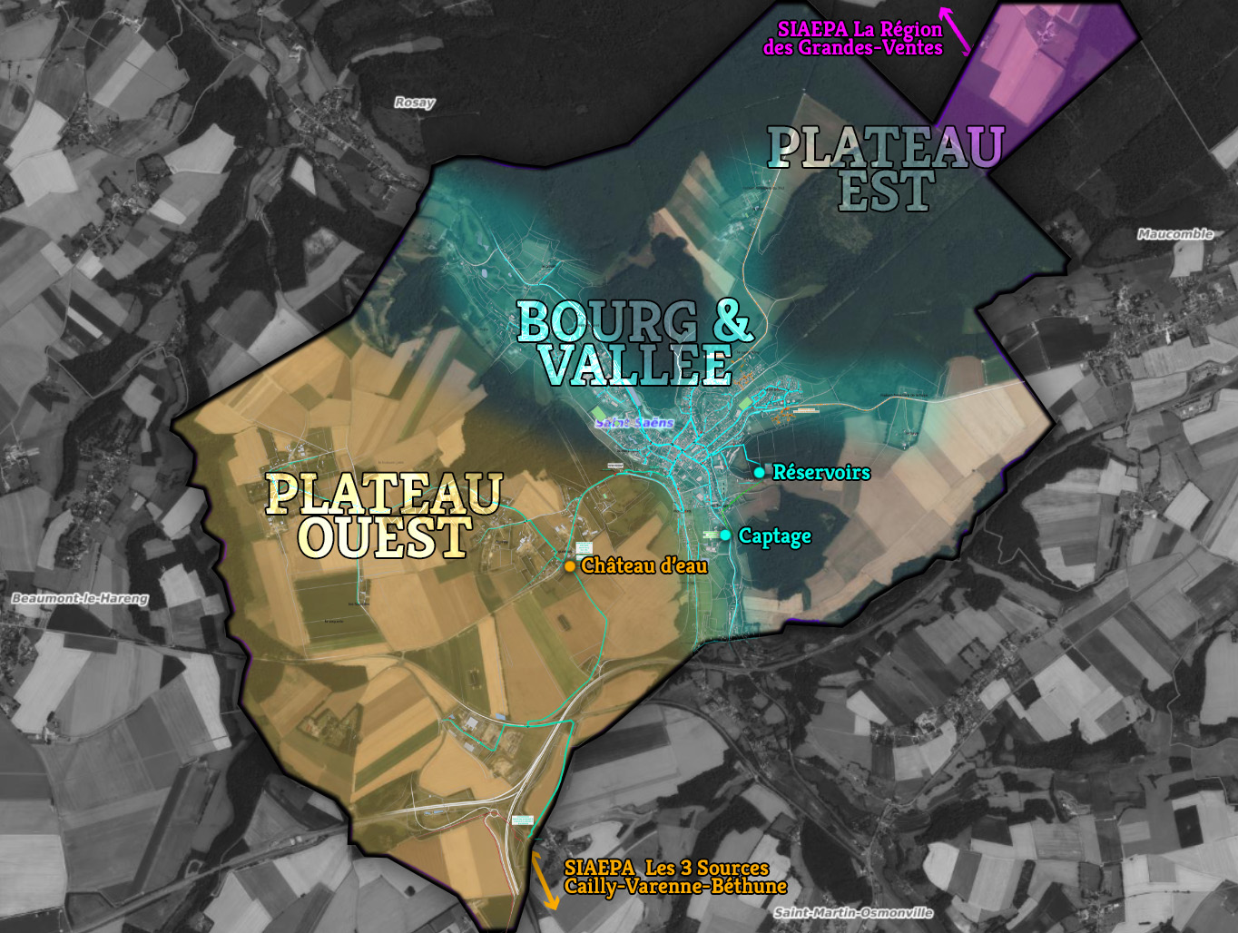 Un SIAEPA est un « Syndicat Intercommunal d’Adduction en Eau Potable et d’Assainissement ». C’est un organisme à but non lucratif qui réunit plusieurs communes. Celui des 3 Sources Cailly-Varenne-Béthune réunit 33 communes dont Saint-Saëns. Il a pour but de financer la distribution de l’eau potable et son assainissement. Les échanges se font avec les entreprises spécialisées que sont Saur et Veolia. Ce SIEPA en question concerne 19 000 personnes dans la région (4 abonnés, sur Saint-Saëns).