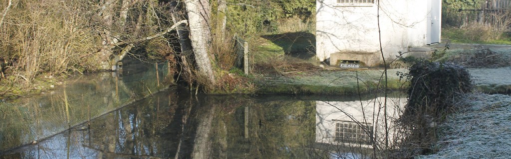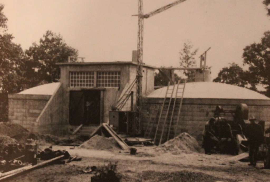 À la base la source était une mare de 30×10 mètres due à plusieurs venues d’eaux souterraines. Le but de l’installation a alors été, si je comprends bien, d’emmurer les sources d’eau sur 2 mètres de profondeur sous le fond de l’eau, qu’on a recouvert d’une dalle de 7×4,5 mètres pour y mettre les 2 pompes (centrifugeuses à pistons) dessus débitant à 14 m³/h chacune. L’intérieur du bloc d’eau duquel on pompe a été imperméabilisé et le sol recouvert de gravier. Le tout a coûté 5 776 098 francs. Le bâtiment (brique et béton armé) comprend les 2 pompes et normalement 1 de secours, puis un moyen pour stériliser l’eau. (Lequel ? Au chlore selon Veolia.) Dans les premiers documents, il est évoqué que les pompes devront se mettre en marche durant les heures creuses, et qu’il y ait un système automatique en fonction du réservoir.