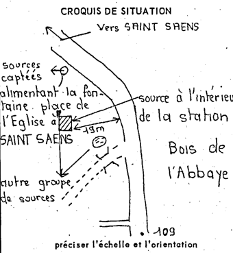 - 22.11.1956 : sous Ernest Leroy, la mairie de Saint-Saëns se bouge. 2 parcelles comprenant la source propriétés de Hartout (et quelqu’un d’autre ?) sont achetées par la communes au prix de 1 273 547 Francs. Le projet se concrétise enfin