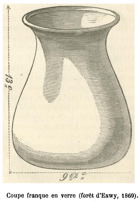 Les seuls indices d’une présence franque (mérovingienne selon Le Maho, 1994) proche de Saint-Saëns sont des sépultures au Camp Souverain : au milieu des restes d’une bâtisse gallo-romaine (15,30 x 8,80 mètres), 30 squelettes francs ont été retrouvés parfaitement alignés allongés sur le dos. Quelques-uns avaient aux pieds des vases en terre et en verre (cf. image ci-contre), et sur eux des « plaques de ceinturon en fer damasquiné » et 3 ou 4 scramasaxes (dits sabres en fer par l’Abbé Cochet, 1870).
