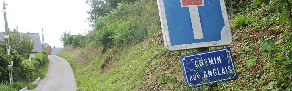 À la base le chemin menant à la ferme « aux Anglais », pourtant actuellement appelé Route des Bois, était celui qui s’appelait chemin aux Englées. Aujourd’hui, c’est le chemin plus bas menant au cimetière qui porte ce nom (chemin aux Anglais). Il y a eu comme un déplacement de la toponymie, d’un chemin à l’autre. C’est autour de l’année 1975 où toutes ces dénominations (Routes des Bois et Chemin aux Anglais) telles qu’on les connaît ont été définitivement fixées. Entre 1972 et 1976 c’est à cette période que tout cet endroit s’est transformé avec la construction du collège Guillaume le Conquérant.