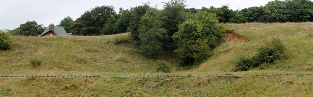 Dominant sur une partie de Saint-Saëns, le terrain est loin d’être plat, dont d’énormes trous faisant face aux Hogues (photo ci-dessus ; point (3) sur la map). Pourquoi ? Il y a de fortes chances que ces trous soient à la base d’anciennes excavations minières lors de l’extraction du poudingue. Les Hogues étant un nom de lieu-dit faisant typiquement référence à cela. Peut-être qu’on a encore davantage creuser pour y mettre un bâtiment.