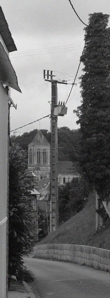 Le chemin des Hogues est un chemin moyenâgeux descendant vers le bourg. C’est peut-être par ici que passaient à l’origine les véhicules et transports pour traverser la vallée depuis Dieppe (faisant partie du chemin Chasse-Marrée, dénomination du chemin saint-saënnais qui est justement dans sa continuation). Quand on y descend, on a une petite vue sur le clocher (et plusieurs poteaux électriques car un peu carrefour de transformateurs pour dispatcher l’électricité).