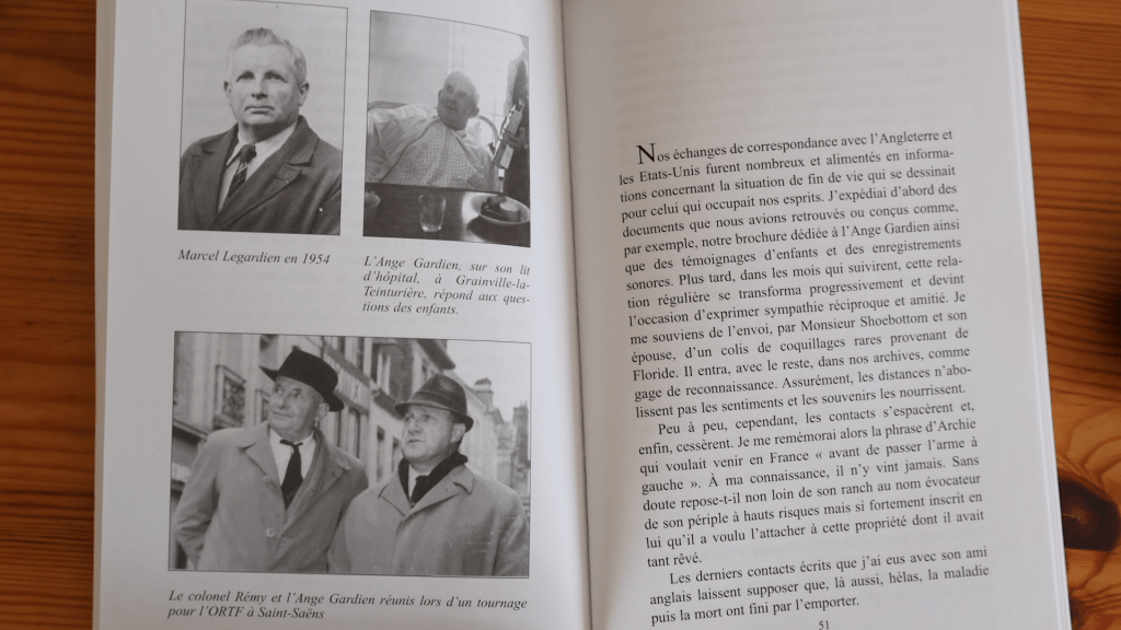 Sur tout ça, de toute cette histoire de résistance sur Saint-Saëns, on n’en connaît pas grand-chose. L’humilité du couple Legardien fait qu’on en garde que très peu de souvenirs concrets de leur réel rôle. Il en existe tout de même un livre de Jean-Claude Méresse (Nom de guerre : Ange Gardien, 2008), mais c’est franchement peu et sous-estimé comparé a ce que sous-entend les bribes de biographies autour de François Faure et du colonel Rémy.